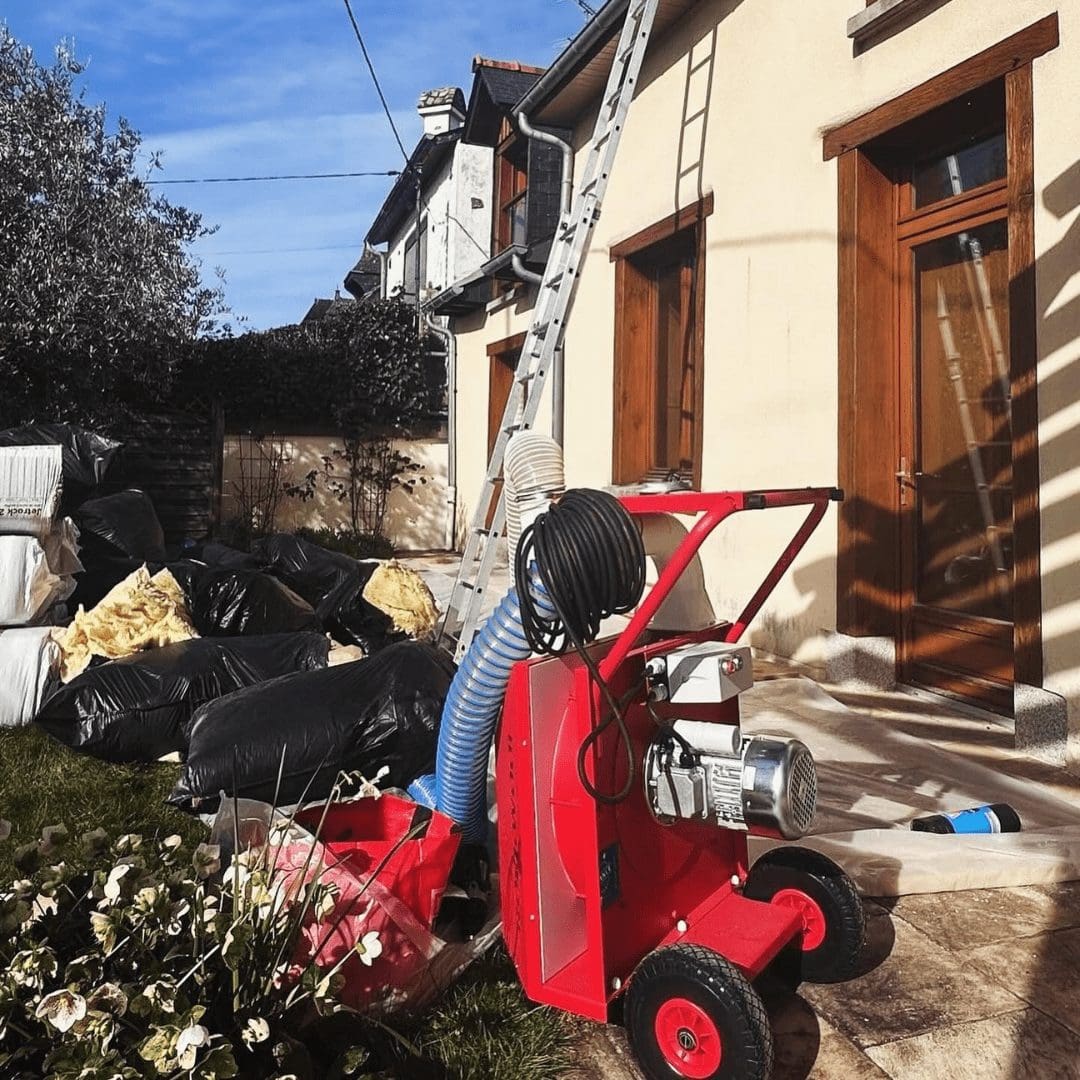 Une fois le nettoyage effectué, nous avons procédé au soufflage de laine de roche neuve. Cet isolant est reconnu pour ses excellentes performances thermiques, sa durabilité et sa résistance au feu. Le soufflage permet une répartition homogène de l’isolant dans tous les recoins des combles, pour une efficacité maximale.