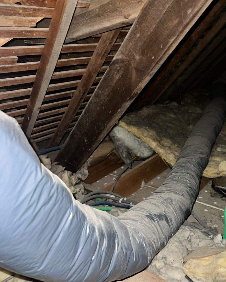 Afin de ne pas perturber les habitants de la maison, nous avons procédé à l’isolement directement par le toit , en soufflant la laine de roche dans les combles. Cette technique présente plusieurs avantages
