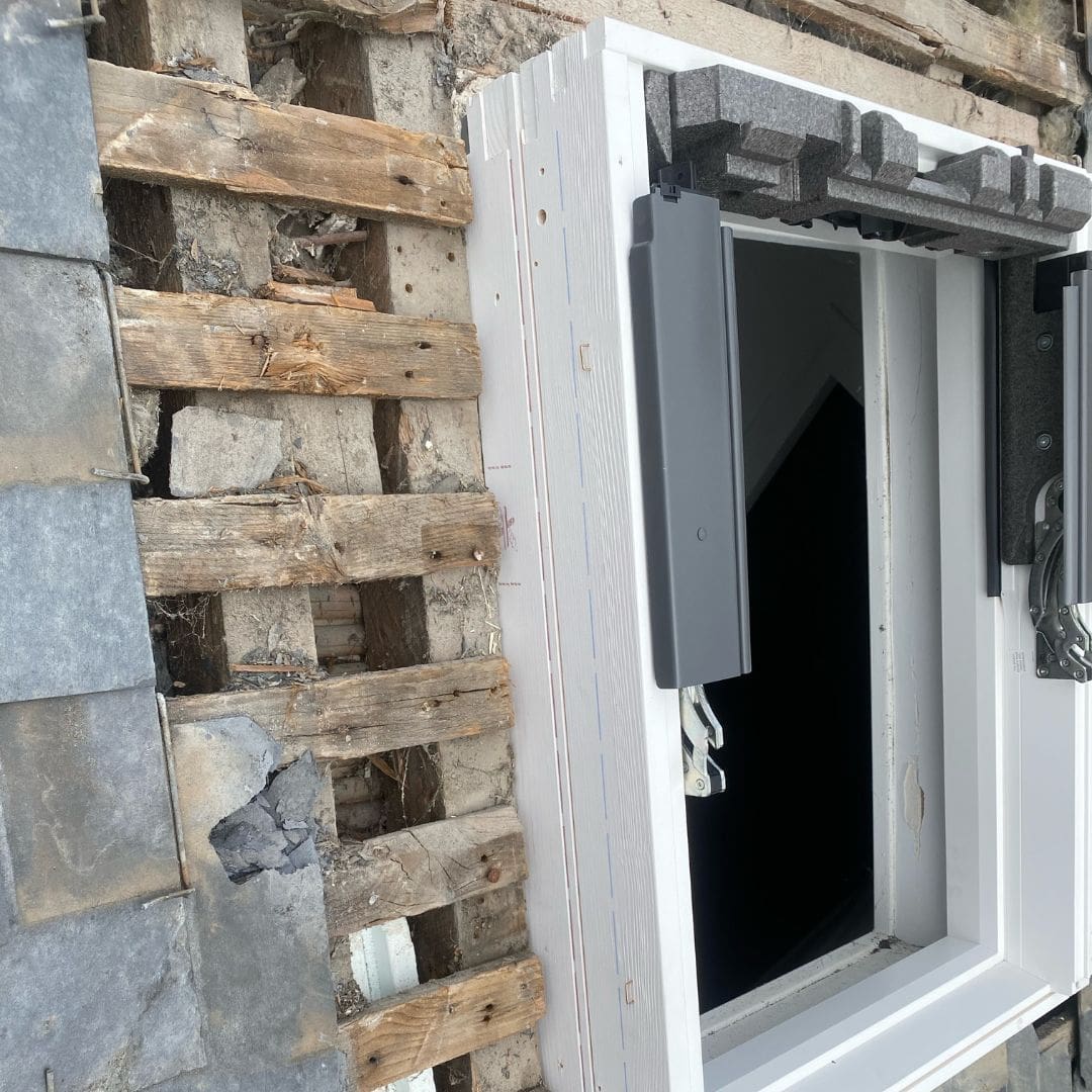 Pour chaque chantier, notre équipe commence par enlever les ardoises autour de l’ancien Velux pour dégager la zone de travail. Ensuite, le raccord d’étanchéité est retiré, suivi de la dépose de l’ancien Velux. Cette préparation permet de poser la nouvelle fenêtre de manière optimale.